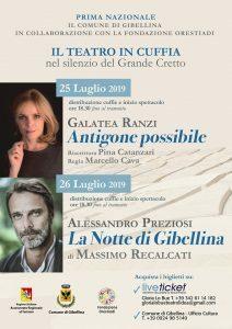 Alessandro preziosi omaggerà il pubblico del Grande Cretto con alcuni frammenti di Moby Dick, uno dei più importanti capolavori della letteratura americana e mondiale. Un eccezionale intervento teatrale che arricchisce la serata del 26 luglio quando l'attore racconterà "La notte di Gibellina", il significativo testo teatrale scritto da Massimo Recalcati (il più noto psicanalista italiano e intellettuale impegnato in alcune trasmissioni televisive della Rai,) proprio sul Cretto di Alberto Burri.