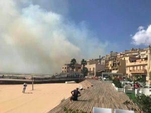 Decine di ettari di macchia mediterranea sono già andati in fumo e per precauzione sia i turisti che il personale sono stati fatti uscire dall’area archeologica.