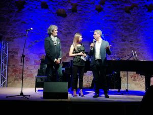 Prima di terminare il concerto, i ragazzi hanno avuto modo di misurarsi col giovanissimo maestro Fabrizio Sciacca che dal contrabbasso ha saputo far risuonare magiche note accompagnando il trio durante l’esecuzione dei classici jazz. Eppure la serata che ha riscosso maggior successo, come del resto era prevedibile, è stata quella di lunedì 17, prima con la musica itinerante nel centro storico dei Drepanum Street Parade, poi con la premiazione vera e propria al musicista e cantante jazz e pop Raphael Gualazzi, giovane talentuoso che calca i palchi di mezzo mondo, una vittoria al Festival di Saremo come Nuova Proposta nel 2011, nello stesso anno secondo all’Eurovision Song Contest e di nuovo a Sanremo nel 2014, ottenendo il secondo posto nella categoria Big.