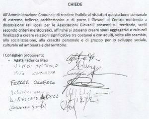 Fa ancora presente che nella precedente sessione consiliare si era stabilito di prelevare e discutere le delibere di cui ai punti 32, 44, 29 e 50. Prelievi delibere 32, 44, 29 e 50 Il Consiglio approva all’unanimità dei presenti con 26 voti favorevoli. PUNTO 32 – ATTO D’INDIRIZZO: AGIBILITA’ PER I LOCALI COMUNALI DEL PRIMO PIANO DI VIA VINCENZO PIPITONE La consigliera Federica Meo dà lettura dell’atto di indirizzo che si allega in copia. Auspica che il centro divenga un punto di aggregazione culturale per i giovani.