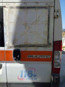 Mi chiedo se è normale  che un mezzo di soccorso possa  circolare in queste condizioni e cioè senza vetro e con un cartone al suo posto ,con il portellone laterale incerottatto forse perche' bloccato o chissà. Mi sento in dovere in quanto cittadino ed utente, di segnalare questo scempio con la speranza che le cose possono migliorare.”     Gireremo immediatamente la segnalazione al Direttore Generale dell’Asp e vi daremo conto della sua risposta.
