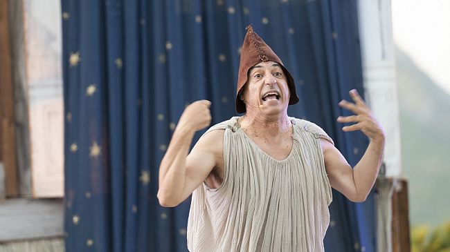 La verve scanzonata di Sosia, i “tracchiggi” di Giove“, la furbizia di Mercurio e l’inconsistenza di Anfitrione: il pubblico segue attento e alla fine applaude per diversi minuti: e la commedia di Plauto portata in scena da Emilio Solfrizzi mette la firma in calce ad un bellissimo sold out per il Segesta Teatro Festival diretto da Claudio Collovà. Oltre a Solfrizzi, sul palco del Teatro Antico nella grezza exomis del servo Sosia, sono in scena anche Simone Colombari, Sergio Basile e Rosario Coppolino, Viviana Altieri, Cristiano Dessì e Beatrice Coppolino.