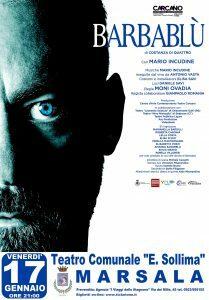 La Stagione Teatrale promossa dall'Amministrazione comunale di Marsala propone per il mese di Gennaio due interessanti spettacoli, entrambi in programma al Teatro “Sollima”. Il primo appuntamento è per il 17, con BARBABLÙ. Interpretato da Mario Incudine, per la regia di Moni Ovadia, è una favola antica, un racconto marcatamente noir immerso fra castelli incantati e chiavette magiche, amori infiniti e amori tragicamente distrutti. In un posto senza spazio, in un tempo che non c’è, Barbablù si apre e si confida - in un intenso monologo - nella sua essenza di uomo, di bambino ferito, di amante frustrato, di figlio non amato.