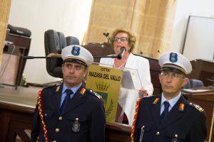 Il Gonfalone della Città di Mazara del Vallo, con la croce al valor militare conferita , è stato portato dai Vigili Urbani in alta uniforme coordinati dal Comandante Salvatore Coppolino e salutato da marce militari e dall’esecuzione del “Silenzio” in memoria dei caduti.