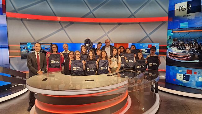 Ulteriore occasione di arricchimento è stata per gli studenti la visita alla sede Rai di Palermo. Il giornalista della Tgr Salvatore Fazio e Claudio Bosco (responsabile di “Rai apre le porte”) hanno accompagnato gli studenti in tutti gli ambienti di lavoro della Rai, dalla redazione alla sala trasmissione per la radio alla teca che conserva i nastri d’archivio, sino allo studio diretta del telegiornale.