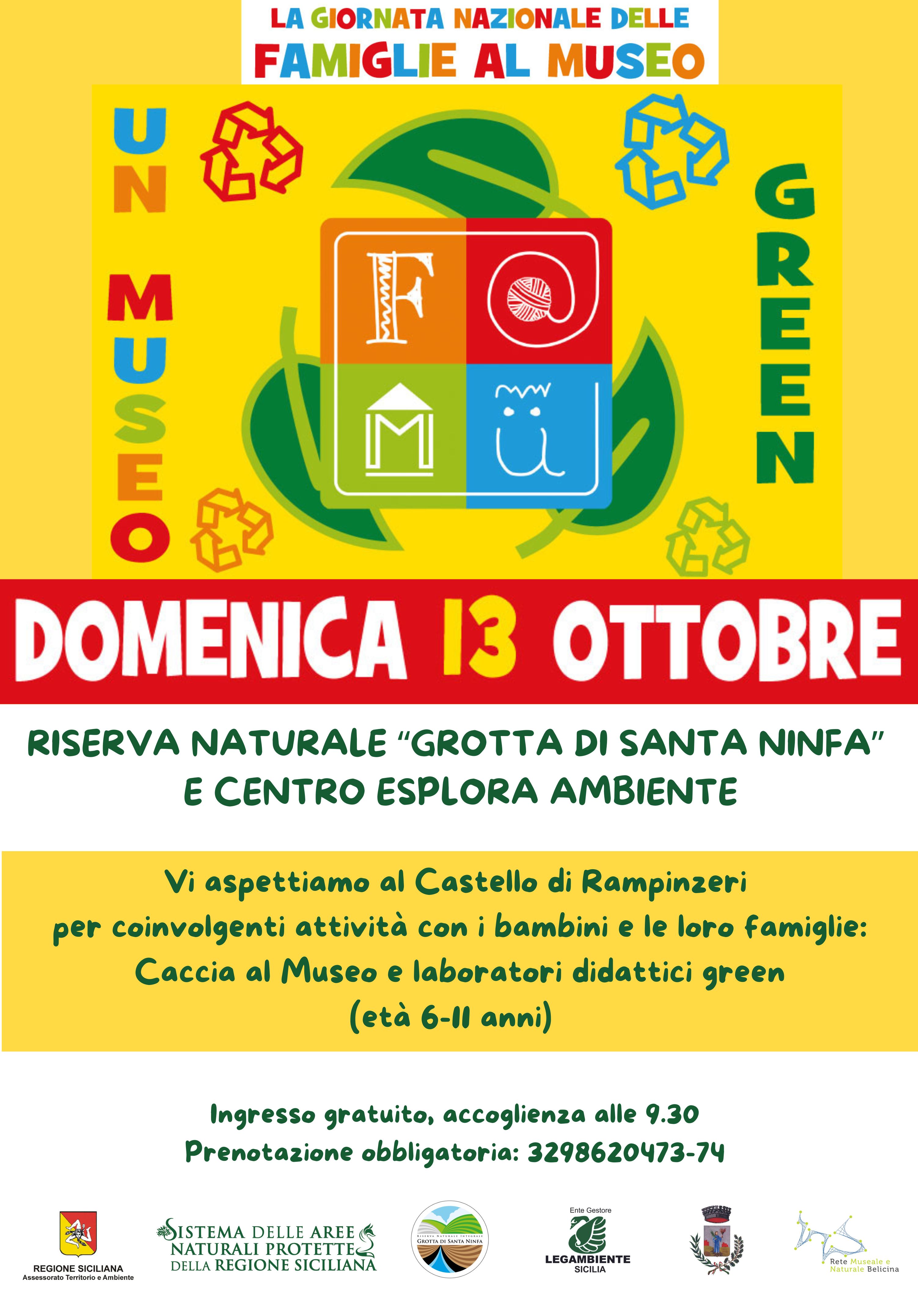 L’edizione 2024 della Giornata Nazionale delle Famiglie al Museo è dedicata ai MUSEI GREEN, e il Centro Esplora Ambiente della Riserva Naturale Grotta di Santa Ninfa è uno spazio totalmente green, immerso nella natura e negli ambienti rurali della Valle del Belice, in cui i bambini e le loro famiglie sono invitati a giocare, esplorare e divertirsi insieme, per scoprire gli interessanti e suggestivi ambienti naturali del nostro territorio.