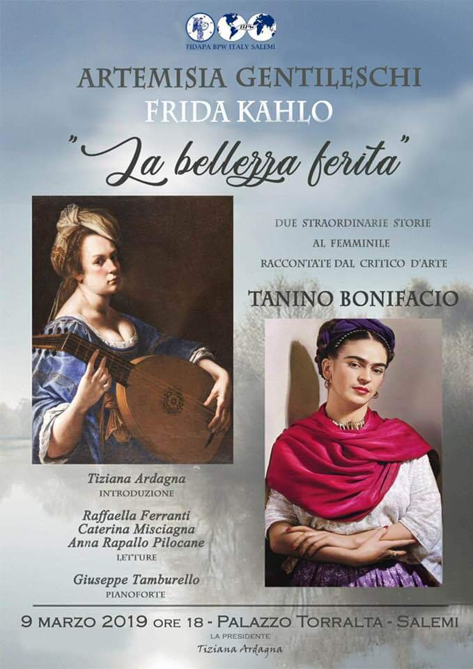 Due donne ferite nella loro bellezza ma che oggi splendono più che mai. Artemisia Gentileschi e Frida Kahlo saranno le protagoniste di un eccezionale appuntamento a Palazzo Torralta. La manifestazione ideata e organizzata dalla Fidapa Salemi capitanata da Tiziana Ardagna, vedrà la presenza dello storico d’arte Tanino Bonifacio che racconterà le storie di queste due straordinarie donne: Artemisia Gentileschi, artista cavaraggesca che fu vittima di uno stupro prima e di una tortura poi, e di Frida Kahlo artista messicana surrealista che trasformo la sua sofferenza fisica in arte.