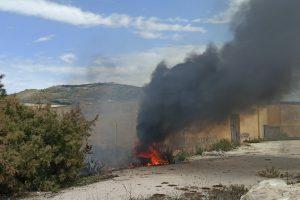 Trapani, incendio alla litoranea. Rifiuti abbandonati dati alle fiamme