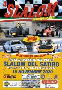 Sono settanta i piloti iscritti alla quarta edizione dello Slalom del Satiro – Città di Mazara del Vallo. La gara, organizzata dal Promoter Kinisia con il patrocinio del Comune di Mazara del Vallo, si disputerà domenica 15 novembre, alle ore 9.00, nell’osservanza rigida delle prescrizioni anti Covid 19. La competizione interesserà la strada provinciale 50 Salemi - Mazara del Vallo, su 2,5 km di percorso con una prova di ricognizione e tre manches con undici barriere di rallentamento. L’edizione di quest’anno sarà una gara senza pubblico.
